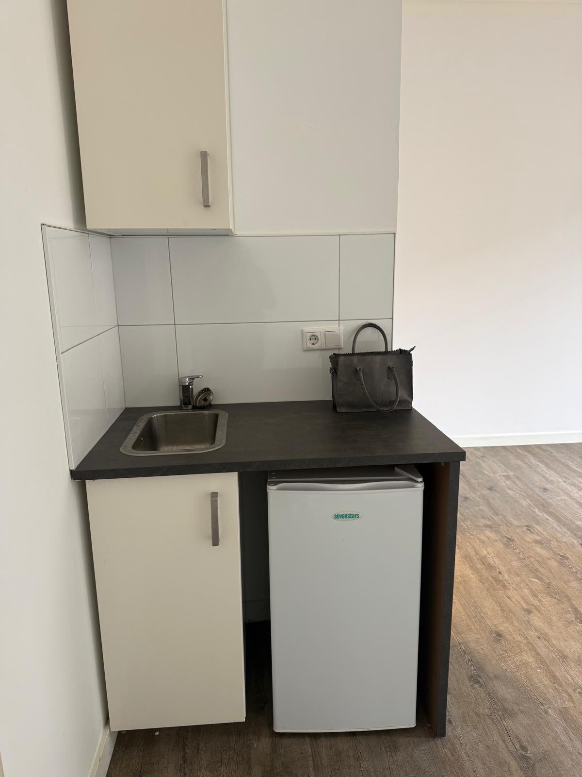 De studio beschikt over een eigen badkamer met douche en wastafel, eenvoudig keukenblok met eigen koelkast, PVC vloer in de gehele studio.