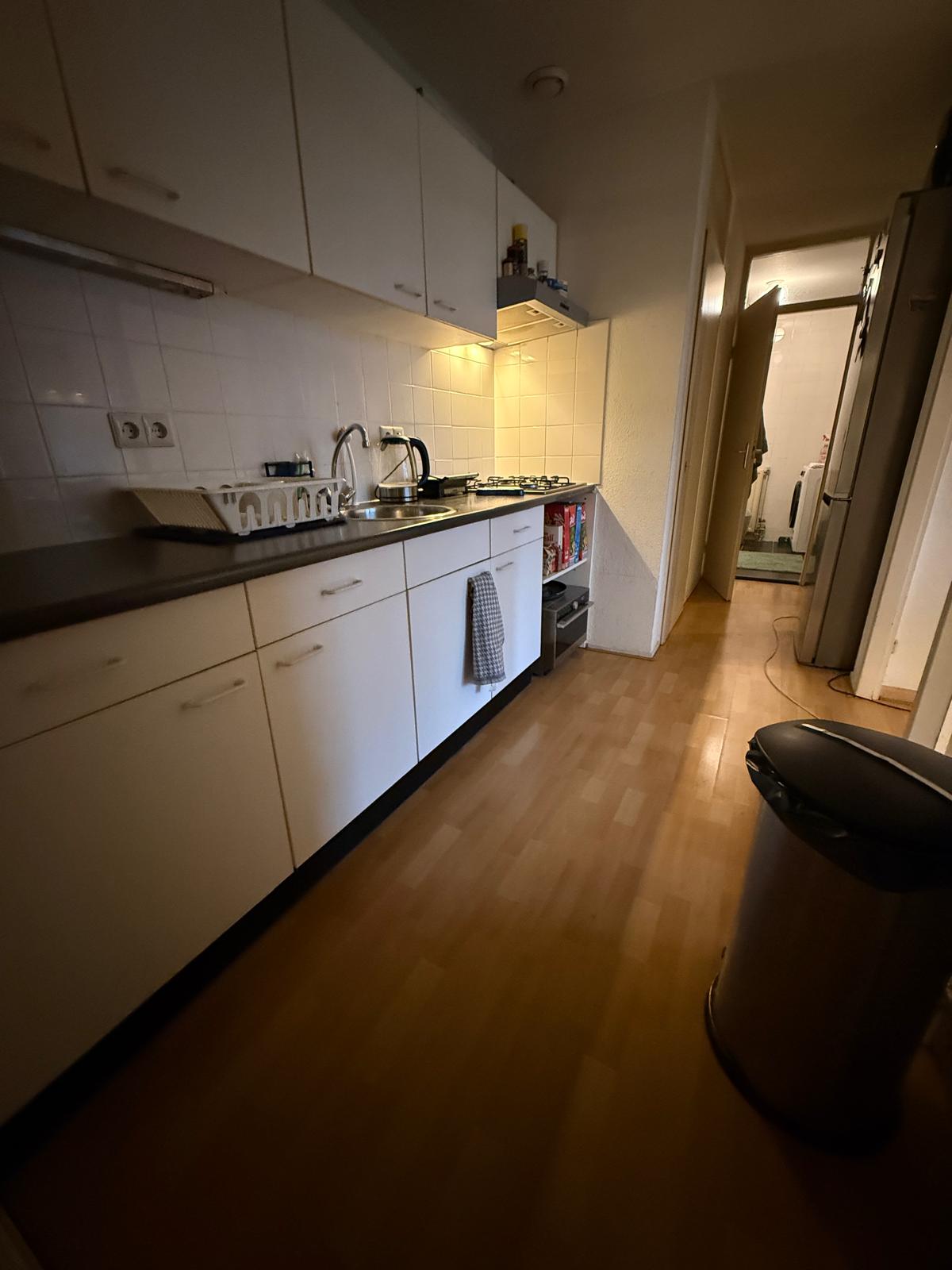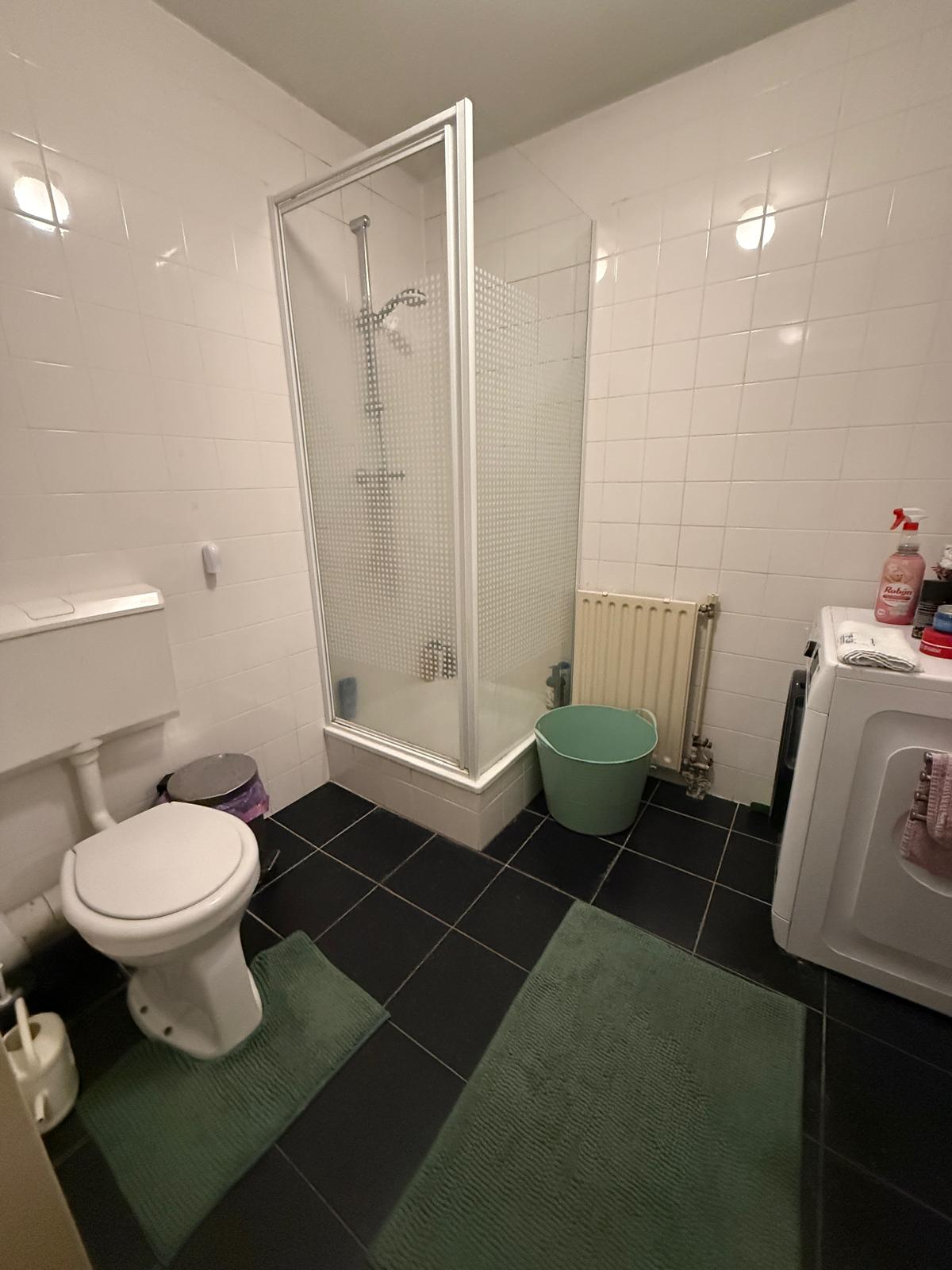 Kamer met gedeelde badkamer/wc, keuken en een kleine balkon.