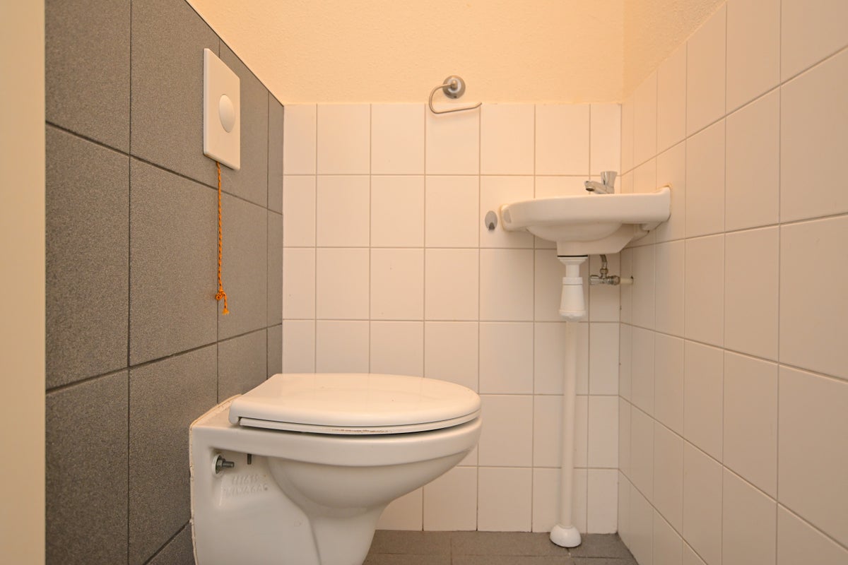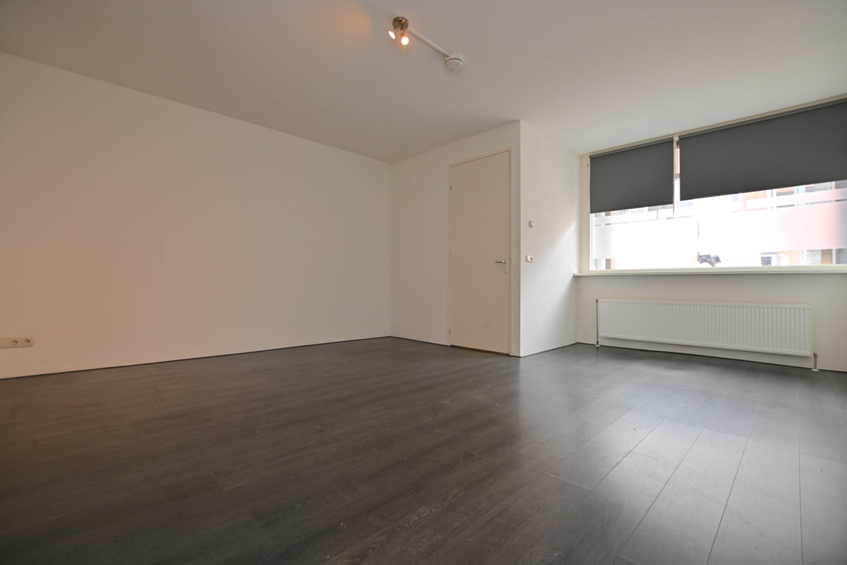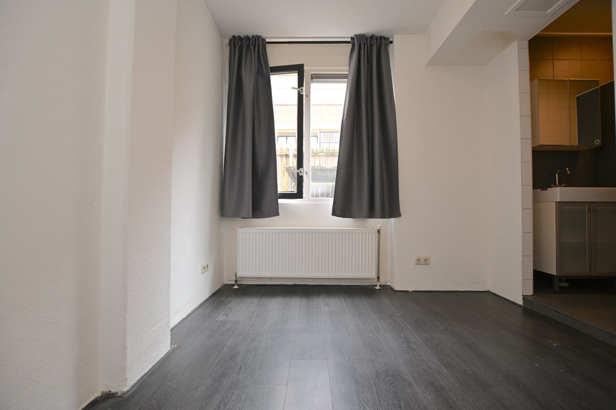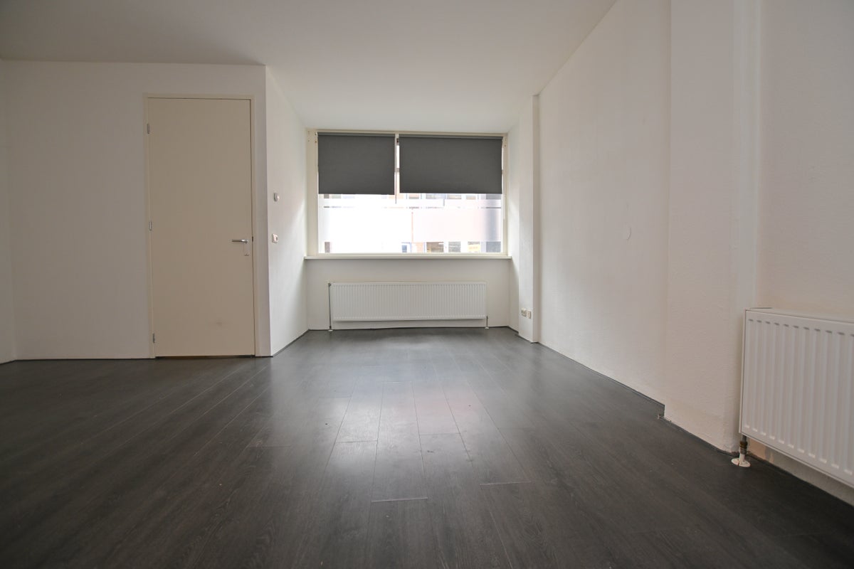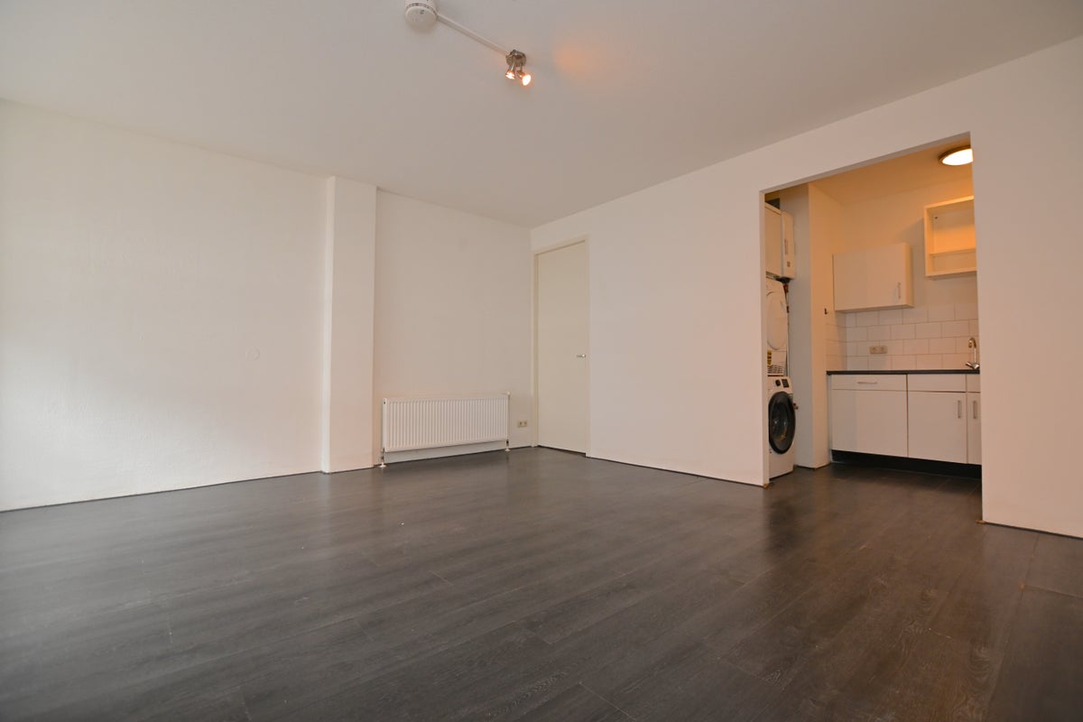 Bij binnenkomst kom je in de hal waar zich het toilet bevindt. Aan het einde van de hal bereik je de woonkamer met open keuken. De woonkamer biedt voldoende ruimte voor een grote bank, eettafel, kast en een bureau.
