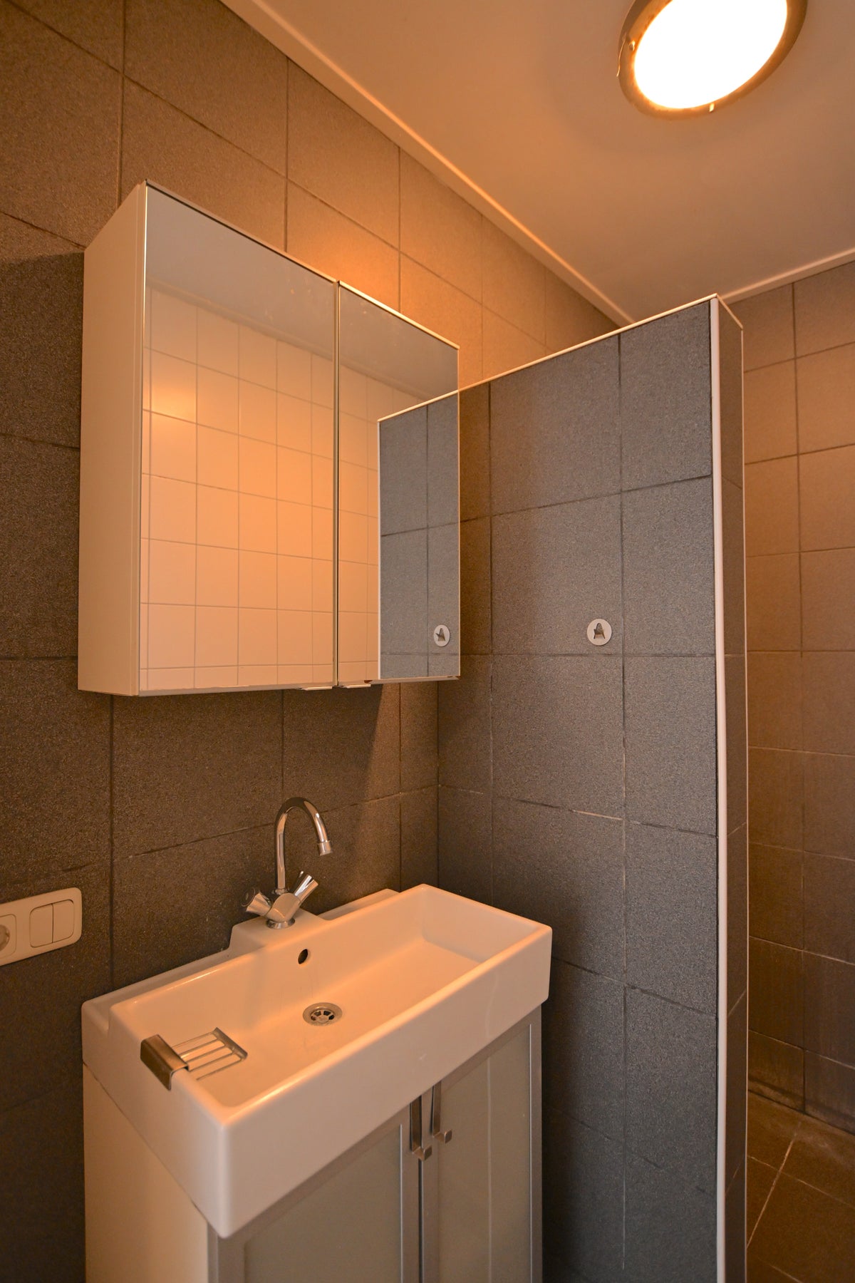 Via de woonkamer is de slaapkamer te bereiken. De slaapkamer biedt ruimte voor een bed en kledingkast. Aangrenzend bevindt zich de badkamer, voorzien van een douche en wastafel.