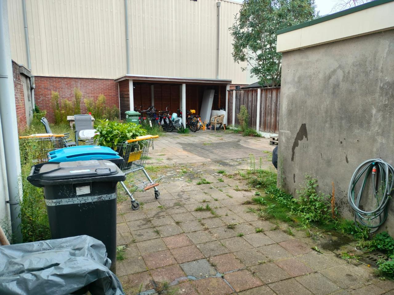 Het huis heeft in totaal 5 kamers, een badkamer met zeer ruime douche, grote woonkamer/keuken, bijkeuken en een zeer grote achtertuin waar met gemak een zwembad in past, terwijl er een bbq aanstaat met een bank er naast ;) Ook hebben we een overdekte fietsenschuur waar inmiddels een heuze verzameling van fietsen (en af en toe motor) staat.