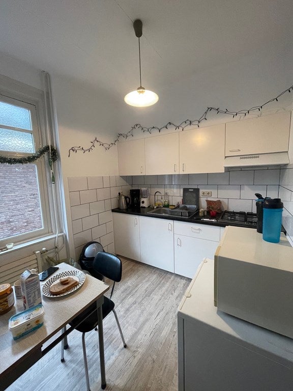 De nette badkamer met ruime douche en de keuken deel je met drie huisgenoten.