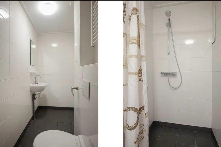 Er is een gedeelde badkamer, keuken en woonkamer.