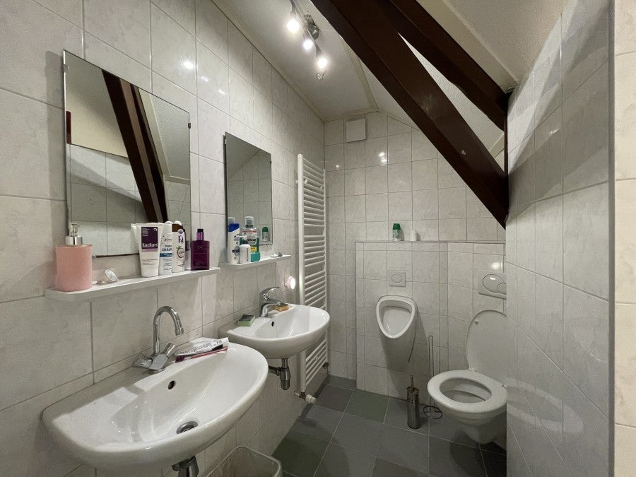De woning beschikt over twee gezamenlijke badkamers met beide twee toiletten en een douche. Daarnaast is er een ruime keuken en een dakterras.