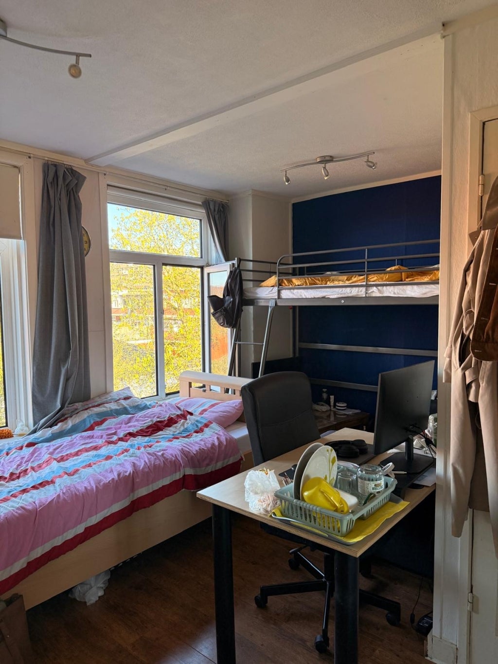 De kamer is ca. 14m2 groot en bevindt zich op de tweede verdieping van een gezellig studentenhuis.