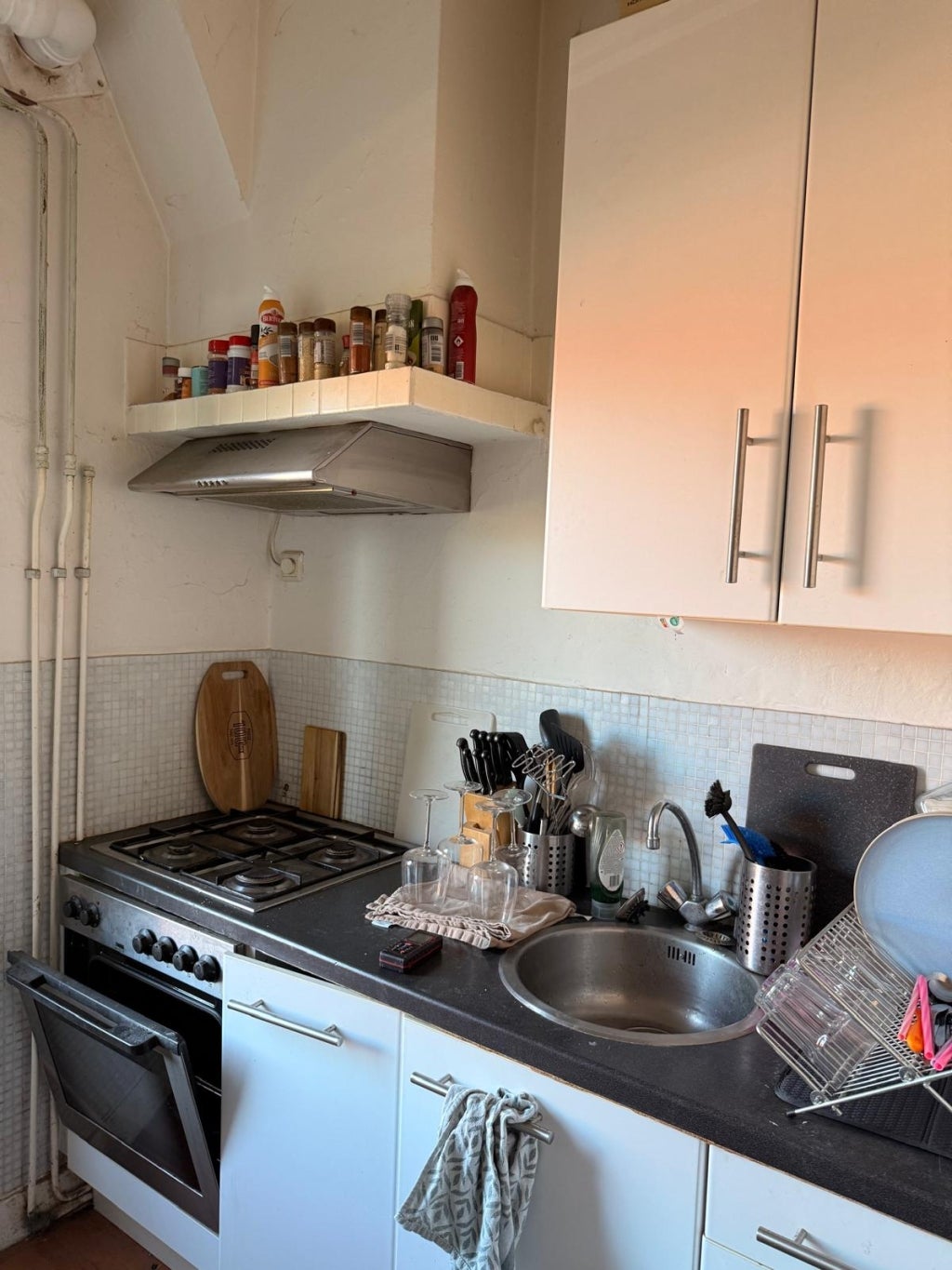 Gedeelde voorzieningen: keuken, badkamer, toilet en balkon.