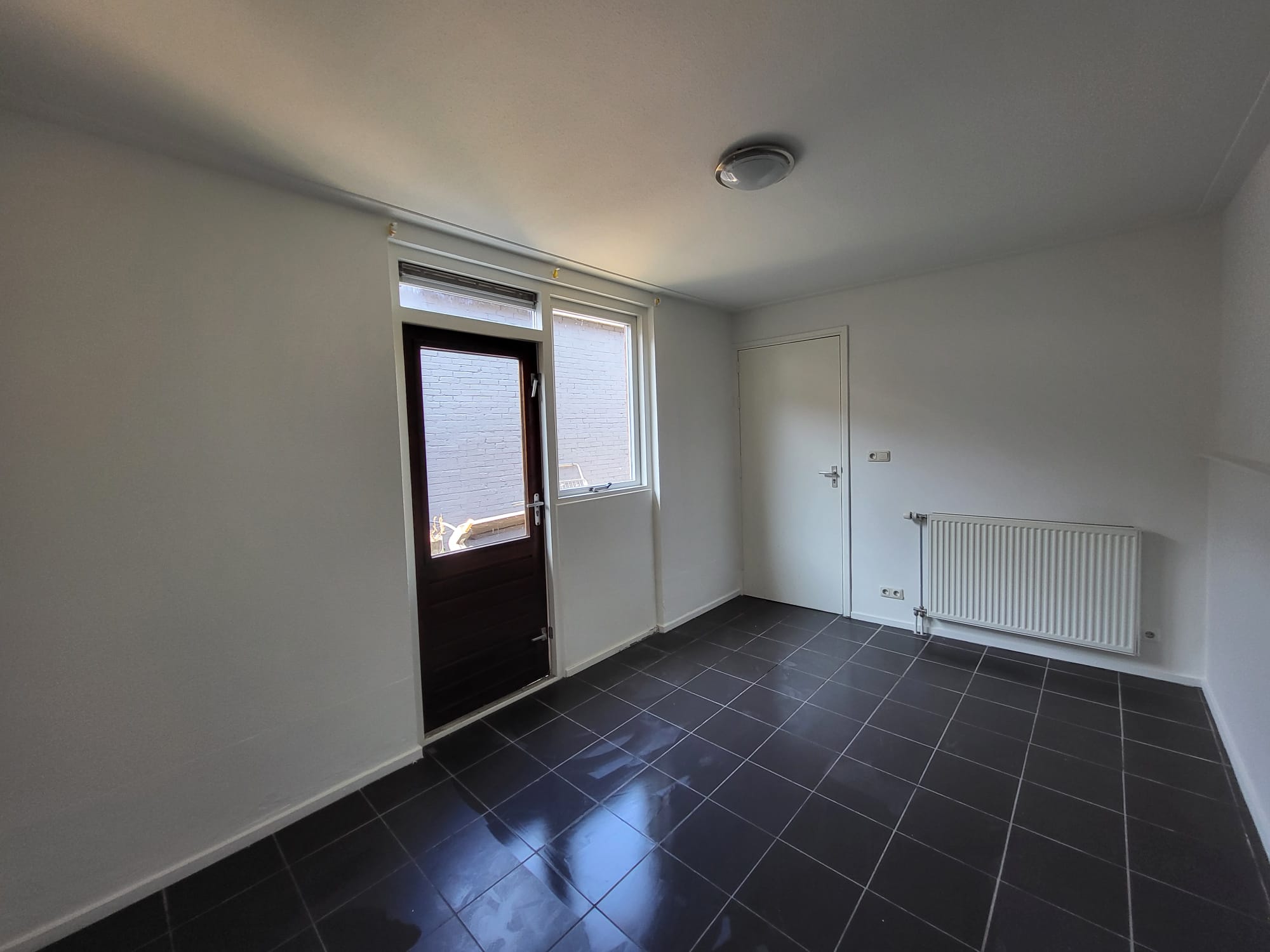 Entree/hal, kamer 1, kamer 2, woonkeuken, deur met toegang naar de gezamenlijke achtertuin, badkamer met toilet, kamer 3 (kamer 3 is beschikbaar) met eigen toegang tot de gesloten achtertuin.