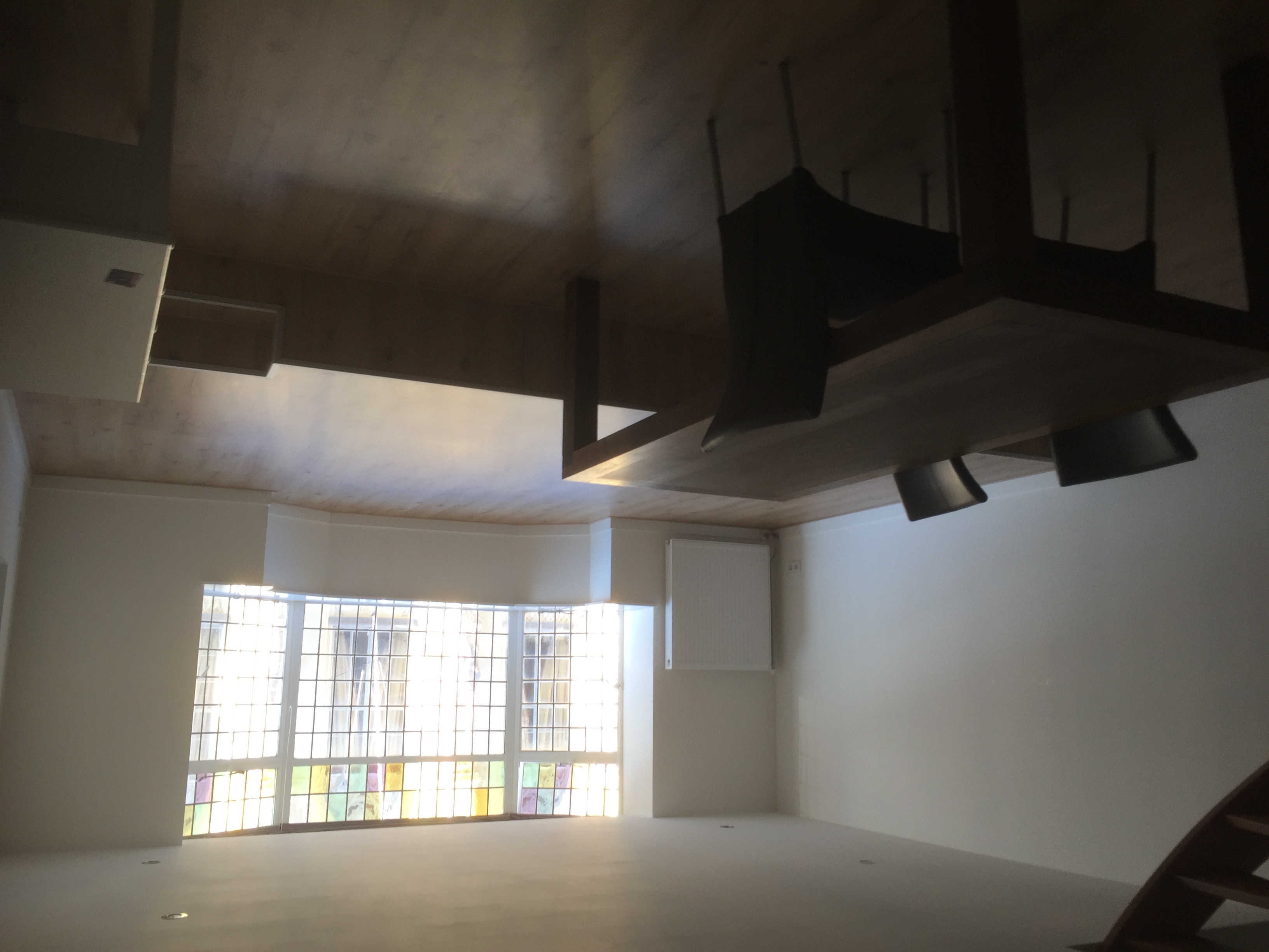 Met een vaste trap kom je op de tweede verdieping waar 2 slaapkamers ( een dus al bezet) en een gezamenlijke badkamer met douche , wastafel en wasmachine ( van huidige huurder maar daar zijn ook weer afspraken over te maken) overal zijn velux dakramen of openslaande ramen!