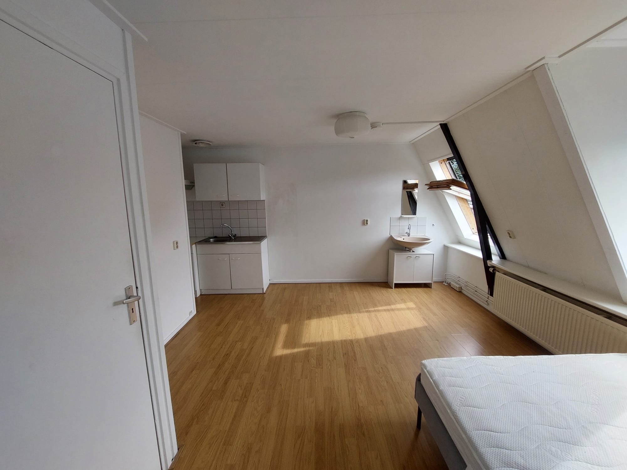 Deze kamer bevindt zich op de eerste verdieping aan de voorkant van het huis en deze verdieping deel je met één medebewoner.