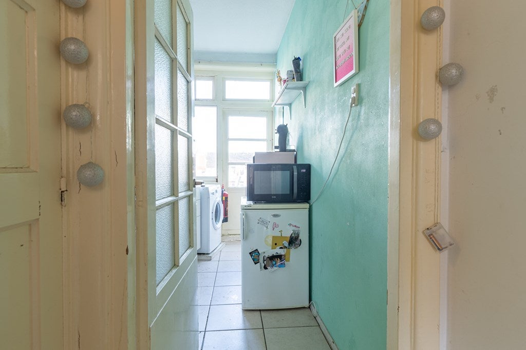 Je betreedt het pand via de voordeur en komt direct in een kleine hal waardoor je middels de vaste trap op de verdieping uitkomt.