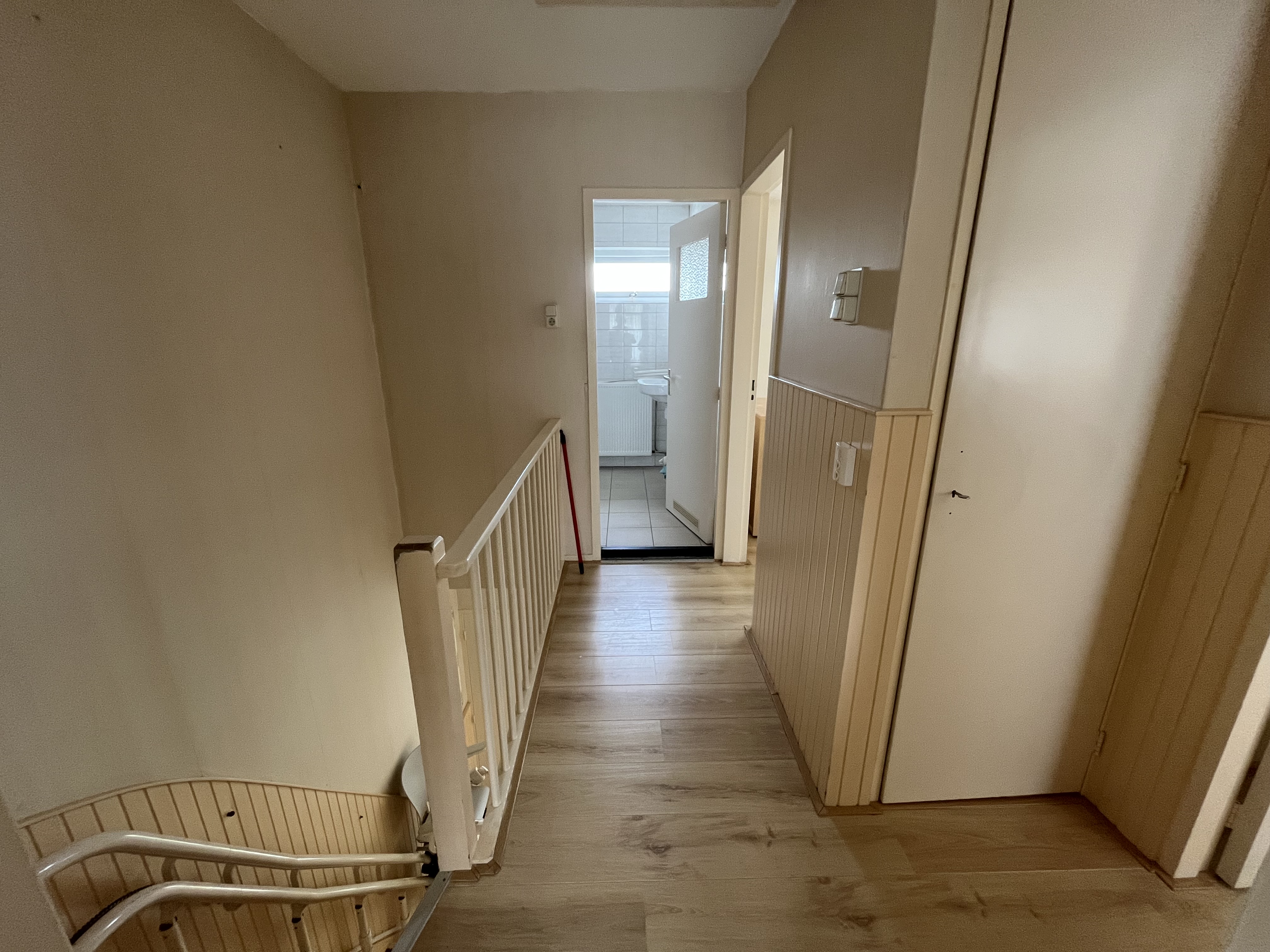 Op de begane grond is geen slaapkamer aanwezig; deze ruimte is volledig ingericht als woonkamer.De woning beschikt over een woonkamer met dichte keuken. De keuken wordt gerenoveerd en u krijgt de keuze om dit in bewoonde staat te laten renoveren en heeft dan ook de keuze in uitbreiding en kleurkeuze. Op de eerste verdieping bevinden zich drie slaapkamers en de badkamer. De opbergzolder is te bereiken via een vlizotrap. De woning is voorzien van zonnepanelen. De achtertuin is gelegen op het noordoosten.De vertrekkende bewoner biedt de volgende overname aan: laminaatvloer op de bovenverdieping, doucherail en handdoekrekje in de badkamer en eventuele lampen.