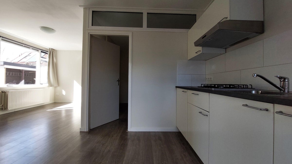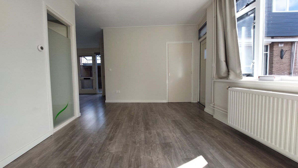 Ruime woonkamer met veel lichtinval van ongeveer 25 m². Ook beschikt de woning over een nette slaapkamer van ongeveer 10 m².