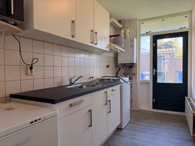Hal met meterkast, bergkast, toilet met fonteintje, woonkamer, keuken met nieuw keukenblok en toegang tot tuin, slaapkamer, badkamer met douche met douche, wastafel en berging.