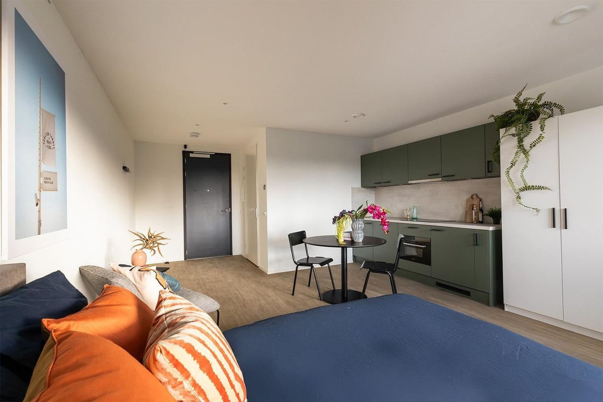 Elke studio is instapklaar - je hoeft alleen je koffer uit te pakken. Meubilair, apparatuur en kookgerei zijn al aanwezig, zodat jij je direct kunt focussen op je studie en het leven in de stad.