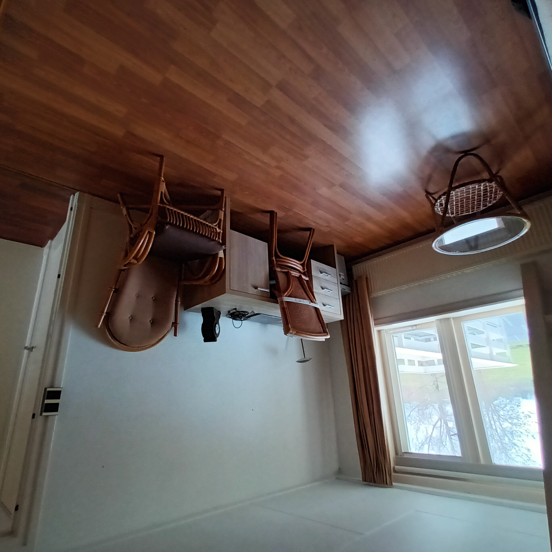 Gestoffeerde en gemeubileerde kamer.