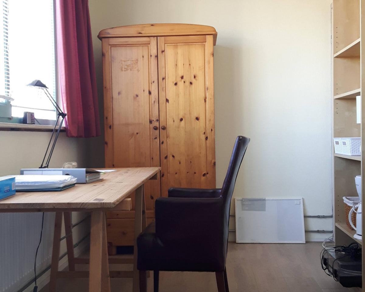 Ik zoek nog een tweede huurder. De twee huurders hebben samen een badkamer met douche en toilet. Internet aanwezig. Geen kookfaciliteiten.