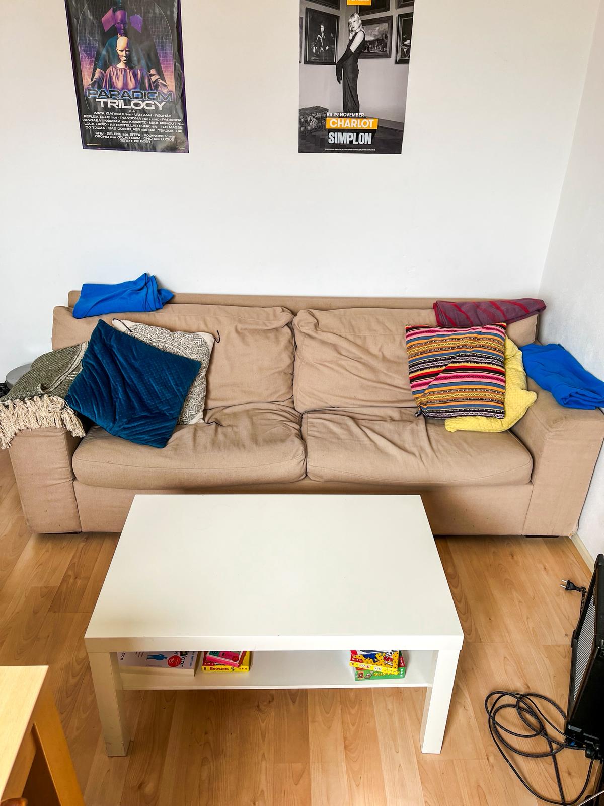 Overname van de bank, kledingkast en het bed wordt verwacht (voor een klein bedrag). Overige meubels kunnen in overleg worden overgenomen.