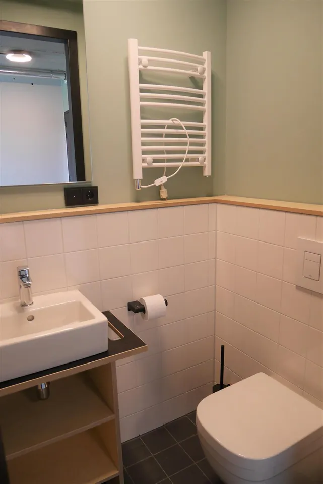 De studio is uitgerust met een tweepersoonsbed (cm), moderne en-suite badkamer, luxe open keuken (incl. inbouwapparatuur), royale kleding- & opbergkast, bureau met stoel, lounge sofa en high-speed internet. De studio is gelegen op de 1e etage (noordzijde) met uitzicht over de binnentuin. Zie plattegrond voor de exacte ligging in het complex.