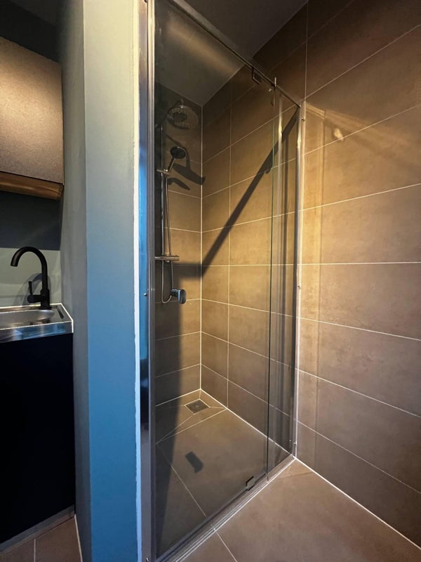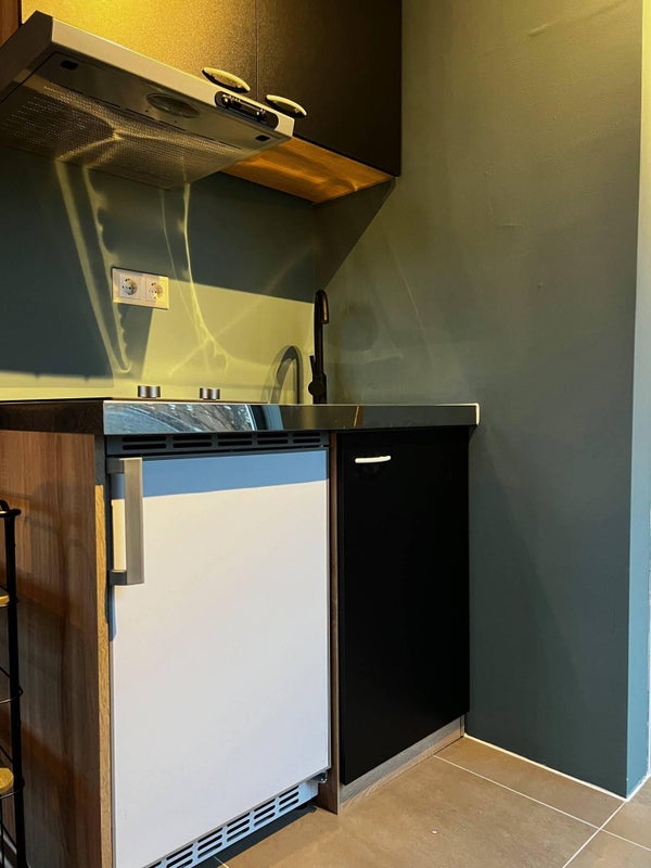 The studio is approximately 22 m² and combines a bedroom and living area with a kitchenette and a private walk-in shower. Fully furnished in a luxurious and stylish manner, the studio is lockable for maximum privacy and security. The toilet is shared with other residents.