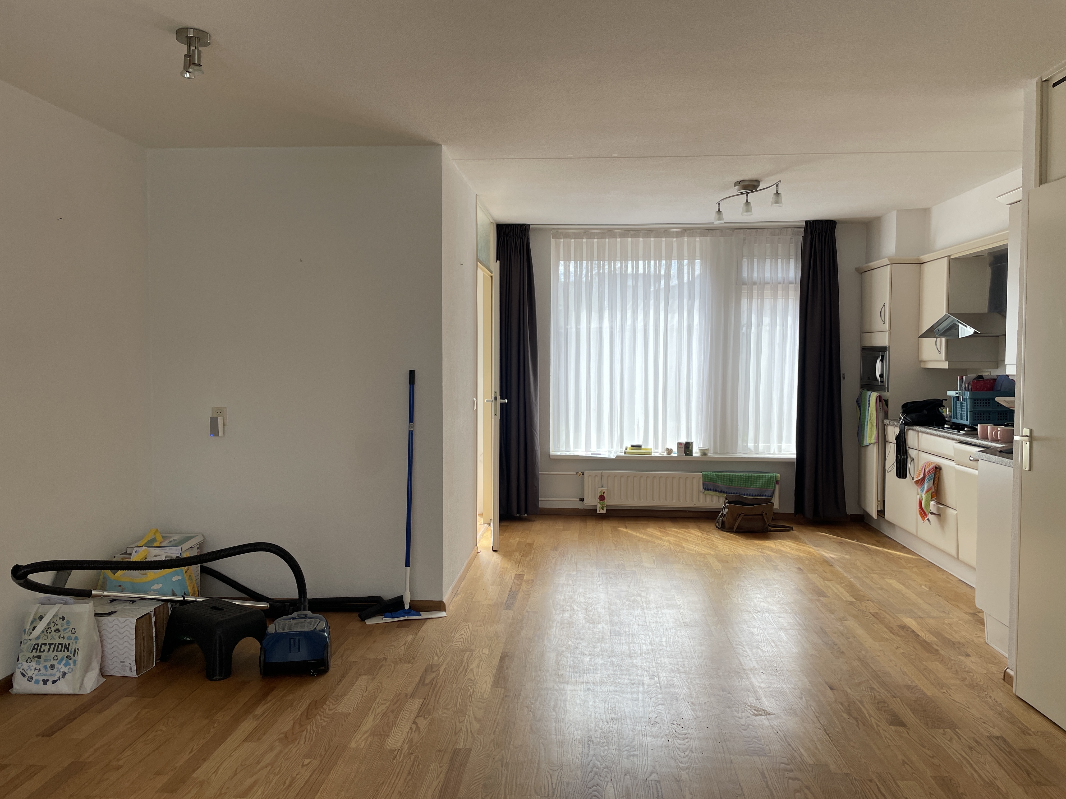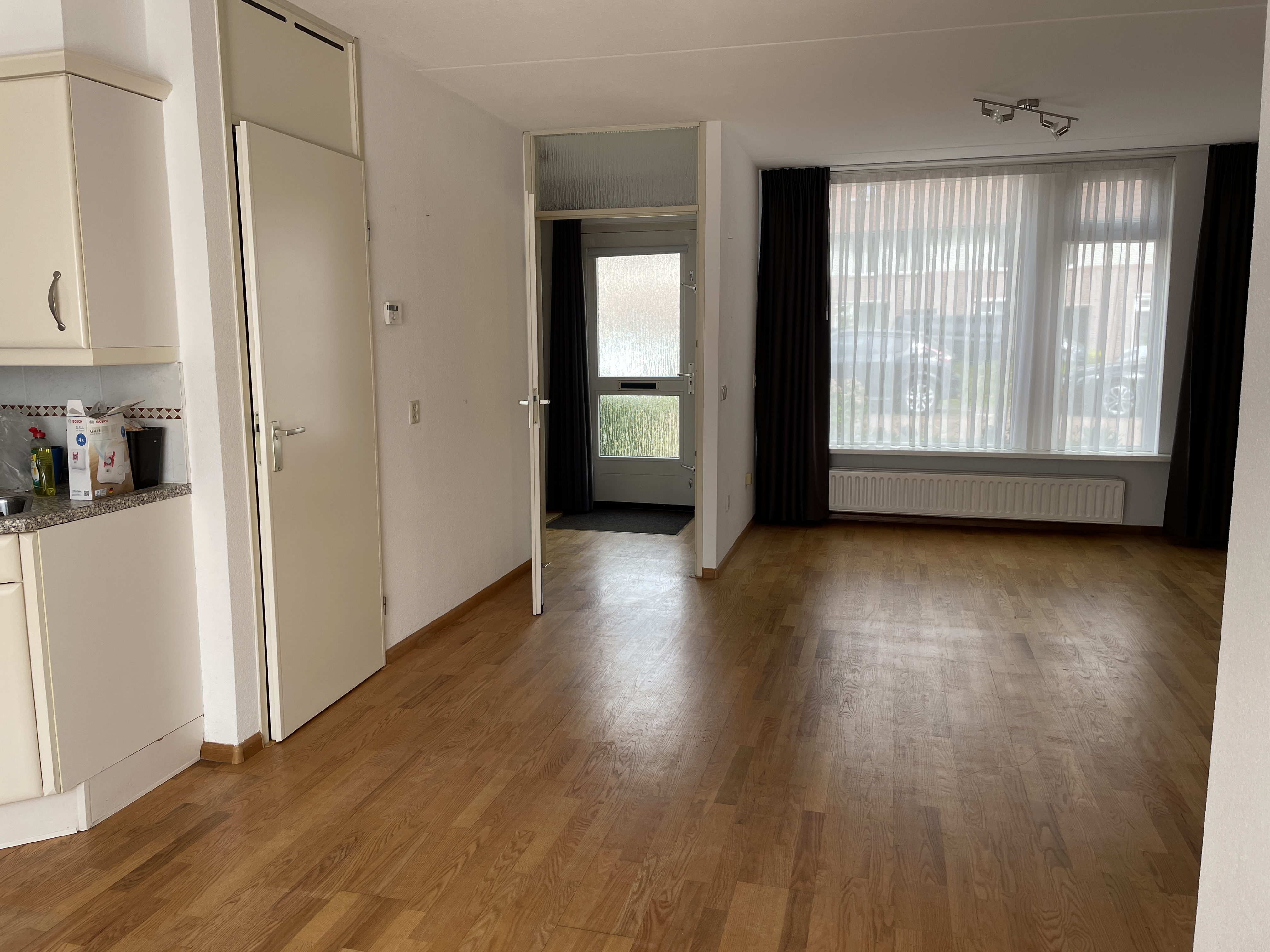 afzuigkap. Zelf aangebrachte veranderingenparketvloer benedenverdieping blijft achter (onderhoud voor huurder). Door de vertrekkende huurder aangeboden ter overname .:raambekleding boven en benedentrapbekledingrolluiken achterlaminaat bovenverdiepingverduisteringsgordijn veluxraamdouchedeurschuttingapparatuur keuken.