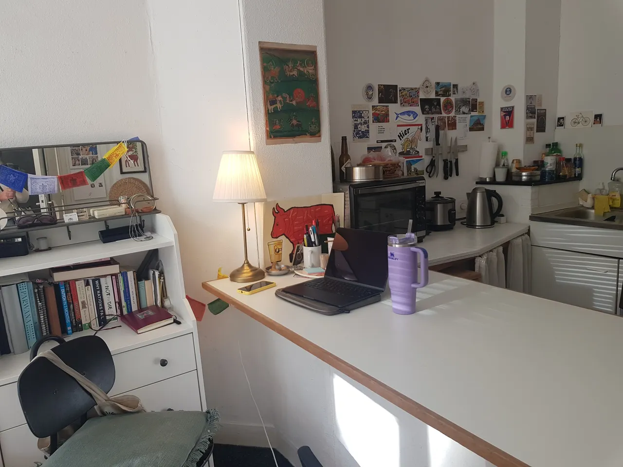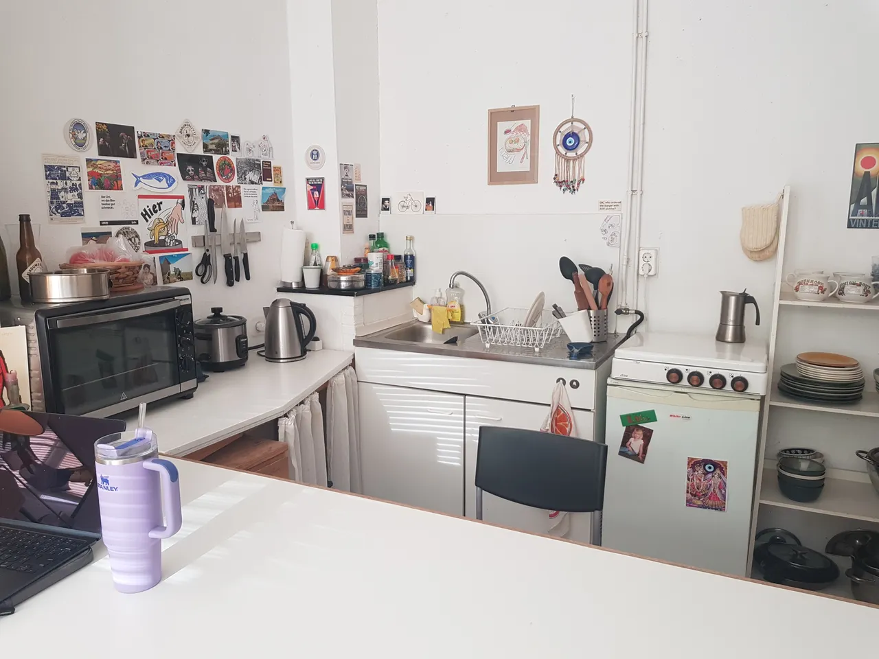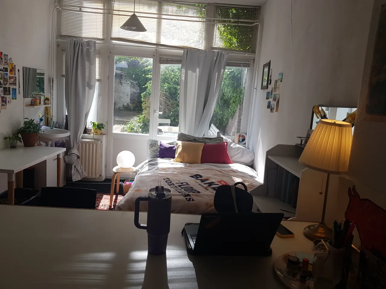2 bathrooms, a general kitchen, a spacious garden with bicycle shed and a spacious basement with laundry room are shared with 8 other students..