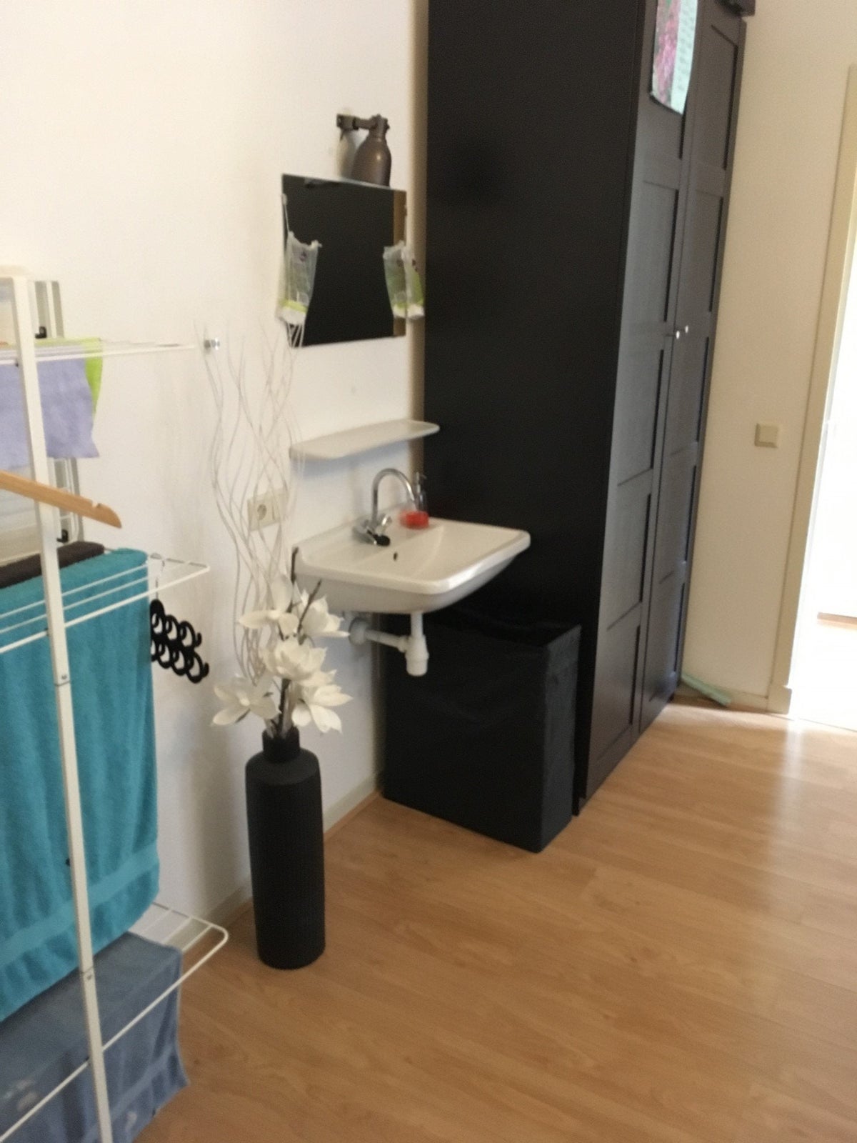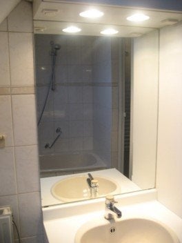 Deze ruime kamer is voorzien van een laminaatvloer en een eigen wastafel. Het toilet, de badkamer, de luxe keuken en het dakterras zijn gedeeld. De badkamer is voorzien van een ligbad, wastafel, wasmachine-aansluiting en douche.