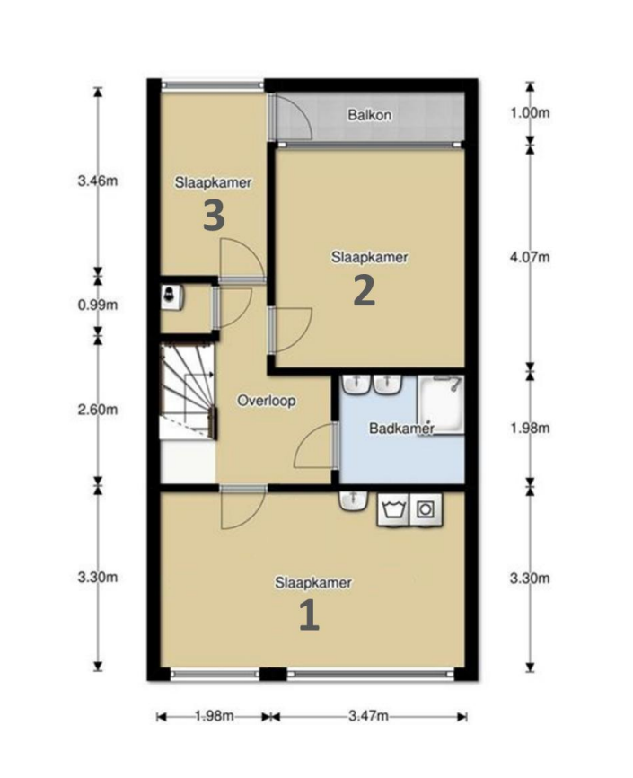 KAMER TE HUUR IN APPARTEMENT MET 2 VERDIEPINGEN
