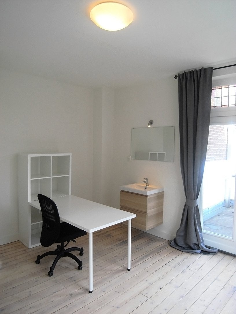 De kamer is uitgerust met een bed, bureau met bureaustoel, inbouwkast en openslaande deuren naar het dakterras.De keuken en badkamer worden gedeeld met drie huisgenoten; per twee kamers is er een eigen toilet. Daarnaast zijn een wasmachine en droger aanwezig.De woning ligt op slechts 2 minuten lopen ....