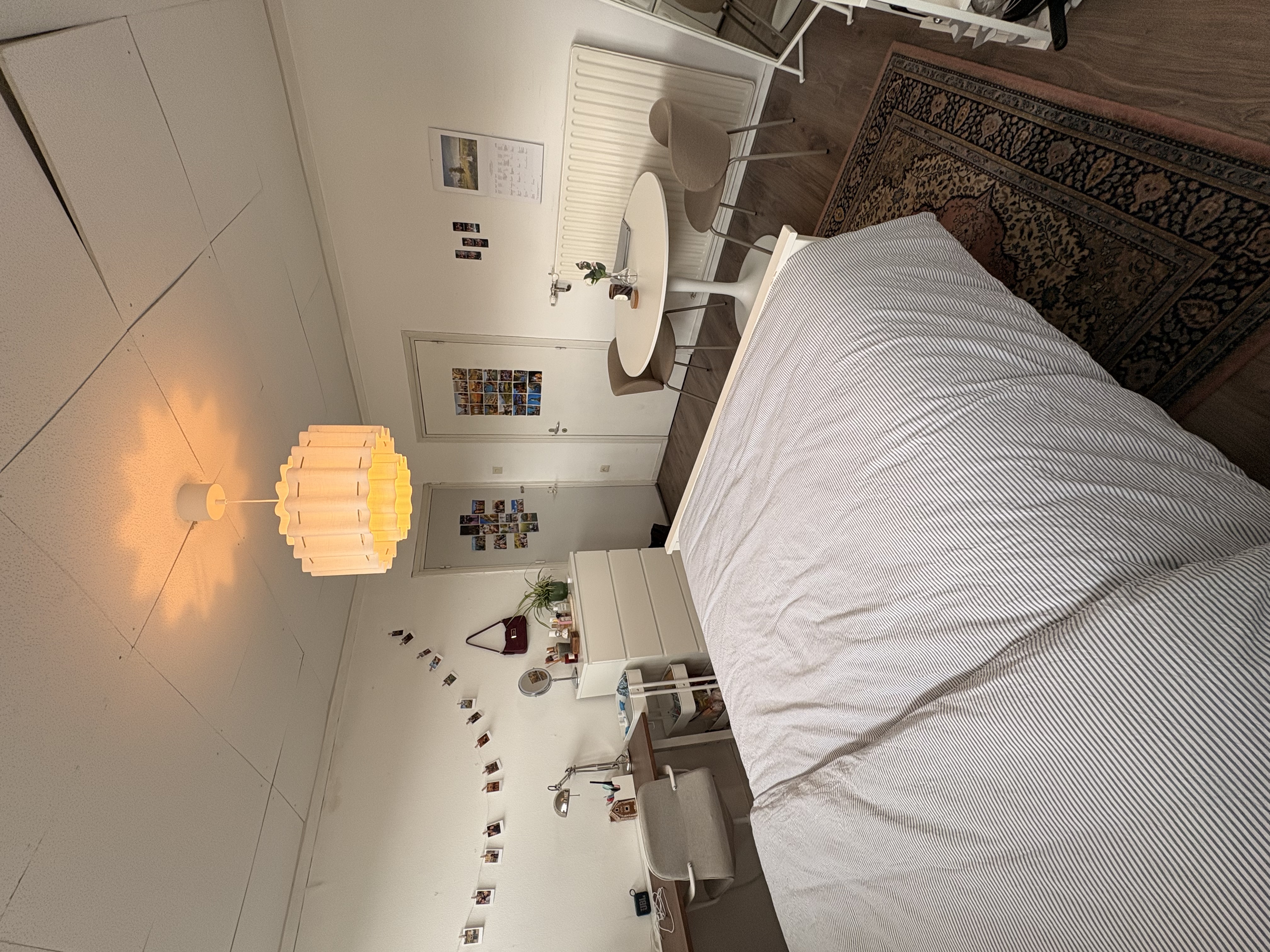 De kamer beschikt over een handige inbouwkast en een vrij recent gelegde vloer.Het bed, de witte ladekast, de spiegel en het open witte kastje wil ik graag laten overnemen tegen een nader af te spreken bedrag.Voorzieningen:In het huis is er een gedeelde eetkamer, woonkamer, keuken, badkamer en een apart toilet.Daarnaast is er:* snelle wifi* een wasmachine* én een vaatwasserHuisgenoten:Je woont samen met drie andere huisgenoten, allemaal studerende meiden in Maastricht.Locatie:De kamer ligt in Heugem, een rustige en fijne wijk:* Op loopafstand van een grote Plus, Kruidvat en een bakker* Meerdere bushaltes in de buurt* ± 5 minuten fietsen naar FHML, UMC+ en UMSports* ± 10 minuten fietsen naar het centrumHuur:De huurprijs bedraagt €585. Inclusief gas, water, elektra, internet en overige servicekosten.Beschikbaarheid:Beschikbaar rond 1 juli (in overleg).Wie zoeken we?We zijn op zoek naar een vrouwelijke student.