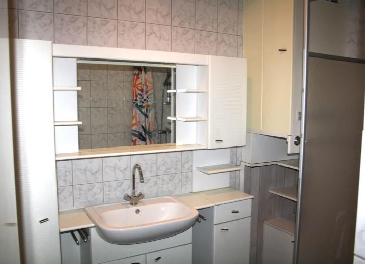 Geheel betegelde badkamer (2.51 x 1.73) met tegelvloer, wasmachineaansluiting, badmeubel met wastafel en inloopdouche met glazen wand. ALGEMEEN: Lift aanwezig. Service kosten euro 75,00 per maand. Maandelijks voorschot (blok)verwarming euro 150,00.