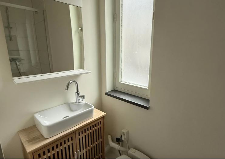 De knusse slaapkamer van 5m² is een fijne plek om tot rust te komen na een drukke dag. Ondanks de compacte afmeting is er voldoende ruimte voor een comfortabel bed en een nachtkastje. De badkamer van 3m² is praktisch ingericht met een separate douche, toilet, wastafel met meubel en een aansluiting voor de wasmachine. Alles wat u nodig heeft voor uw dagelijkse verzorging binnen handbereik.