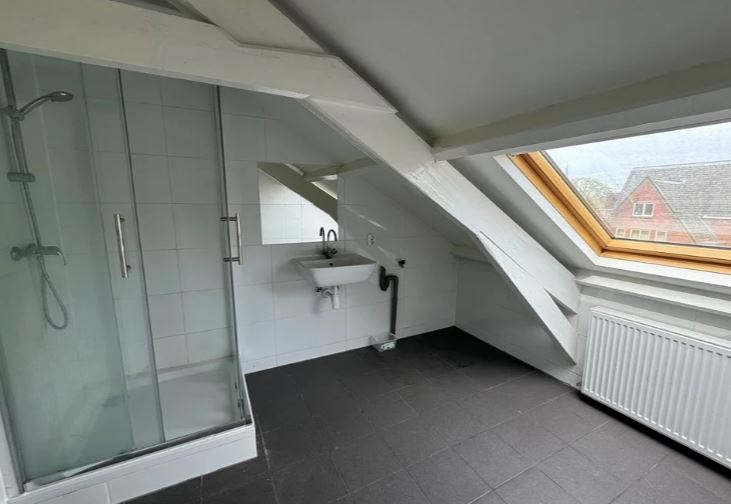De keuken is volledig uitgerust met een gaskookplaat, oven/magnetron en afzuigkap. De badkamer is netjes afgewerkt en van alle gemakken voorzien. De toilet wordt gedeeld met 5 huisgenoten, waarvan 3 vrouwelijke en 2 mannelijke medebewoners.De kale huur van de kamer 6 bedraagt €783,56 per maand. Daar komen servicekosten van €100,- per maand bij, welke gas, water, elektriciteit en internet dekken.