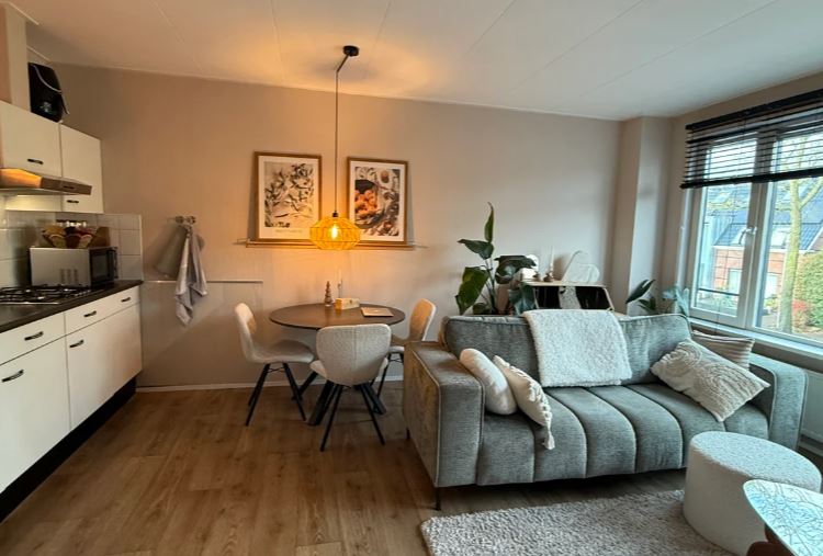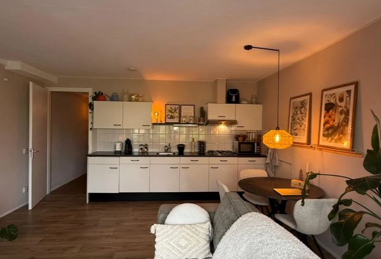De woning beschikt over een lichte woonkamer met open keuken. De keuken is compleet uitgerust met een koelkast, vaatwasser, 4-pits gasfornuis en afzuigsysteem. Het appartement heeft één slaapkamer met aangrenzende badkamer. In de badkamer bevindt zich een wasmachineaansluiting.