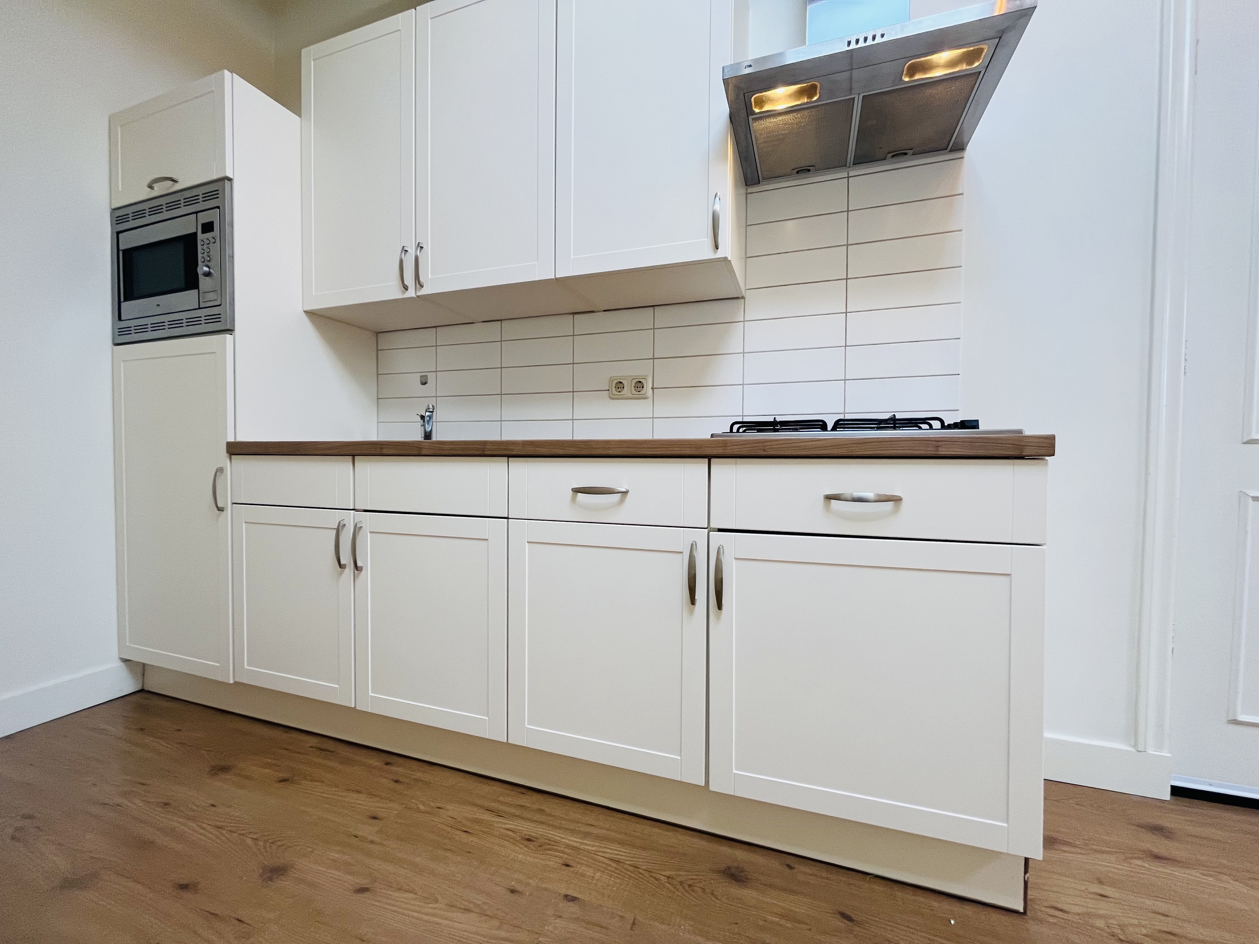 23 m². Open keuken welke is voorzien van een kookplaat, koelkast, afzuigkap, vriezer en combi-magnetron. Slaapkamer van circa. 9 m².