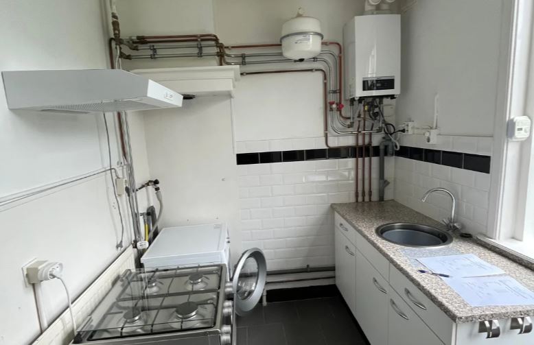 Golfstraat, in de wijk Sportpark, Breda nabij het centrum een onzelfstandige woning op de eerste verdieping voor 1 persoon Entree, trap naar verdieping, kleine hal met nieuwe keuken aan de achterzijde (zonder app.