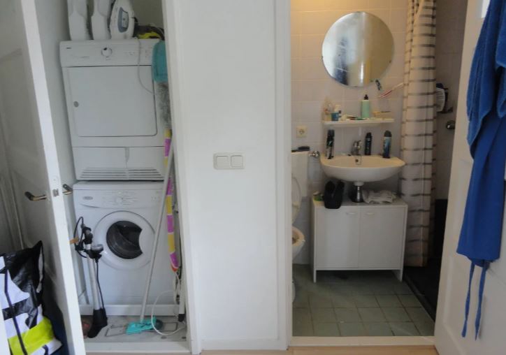 De woning beschikt over een ruime en lichte woonkamer met halfopen keuken. Op de bovenste verdieping bevindt zich de slaapkamer, wat zorgt voor een prettige en rustige indeling. Daarnaast is er een aparte kast met ruimte voor een wasmachine en droger. Voor extra opslag is er een berging aan de achterzijde van het pand, met toegang tot de gezamenlijke tuin.