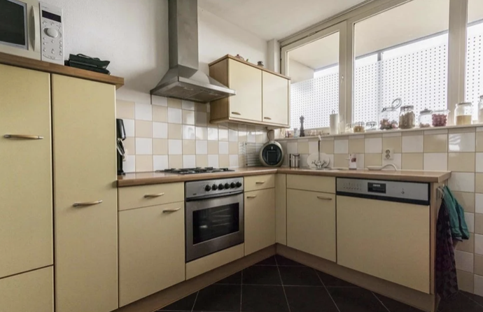 Het appartement is gelegen op loopafstand van winkelcentrum Limbrichterveld, scholen, treinstation en het stadscentrum. Achter het gebouw is er eigen parkeergelegenheid. INDELING Begane grond Via de entree met bellentableau, postvakken kom je bij het trappenhuis en de liften. 11e Verdieping Hal/entree (3.90 x 1.10), slaapkamer 1 (4.10 x 3.00 ) voorzien van laminaatvloer; half open keuken (4.30 x 2.90 cm) met zwarte plavuizen vloer, voorzien van 4-pits gasfornuis met afzuiging, koelkast, oven en vaatwasser.