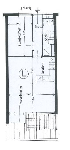 Het keukenblok is uitgerust met een inbouwoven, elektrische kookplaat en afzuigkap. Aan de straatzijde heeft u de beschikking over een balkon. Aan de galerijzijde bevindt zich de slaapkamer met een oppervlakte van circa 12m². De badkamer is voorzien van een douche, vaste wastafel en het toilet.