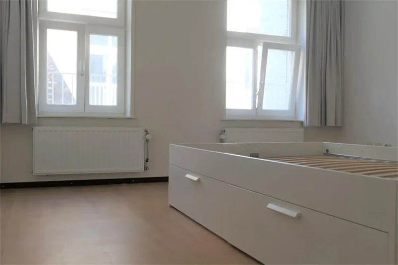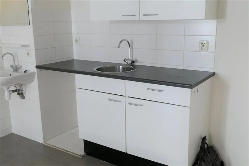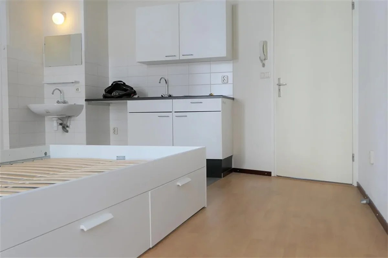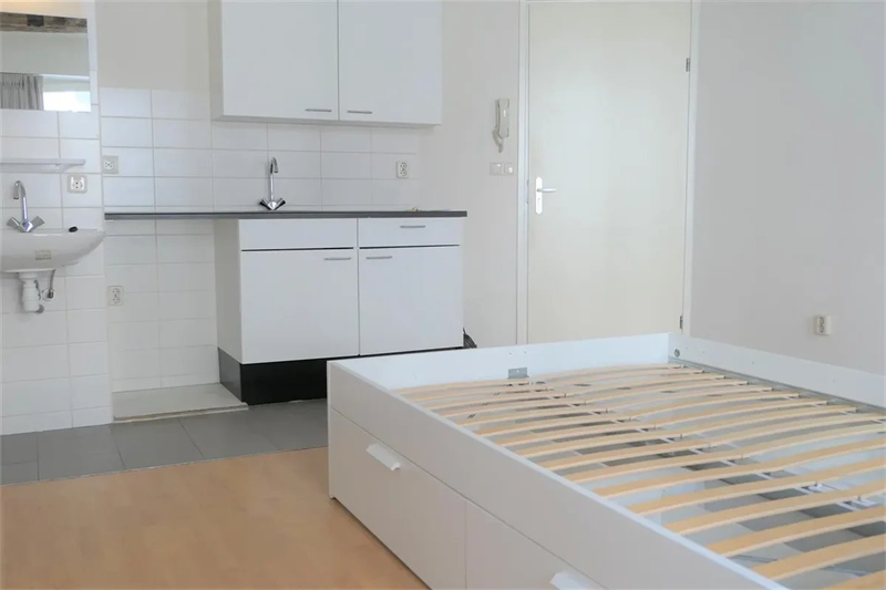 De semi-studio bestaat uit een lichte woon- / slaapkamer met open keuken en een aparte wastafel. Douche en toilet worden gedeeld met één andere huurder.