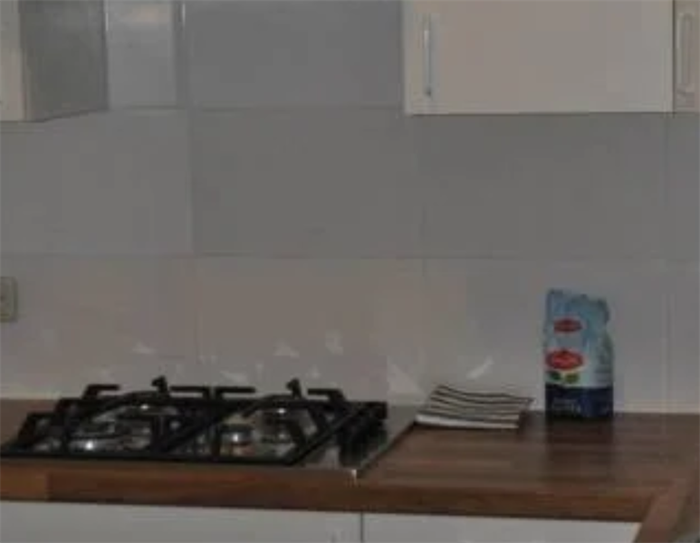 Keuken v.v. aanrechtblad, gas kookplaat, afzuigkap, oven, magnetron en koelkast. Kamer bevind zich op de begane grond voorzijde van het pand. Badkamer v.v.