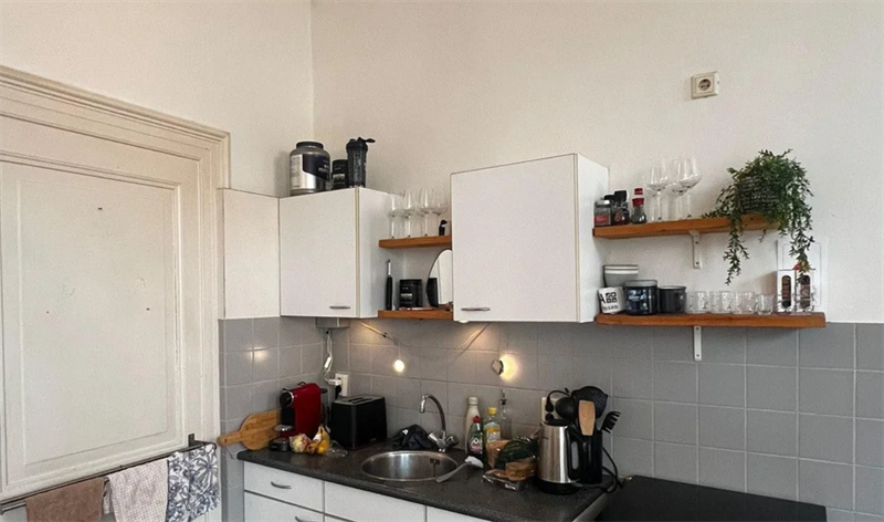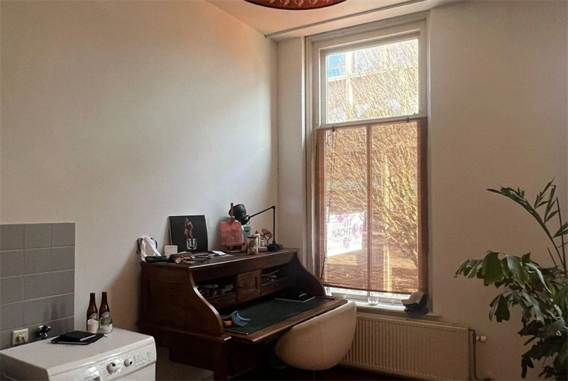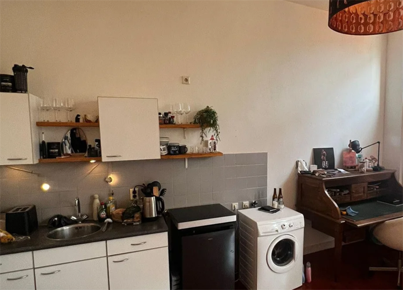 25 m² te huur aan. De studio beschikt over een eigen keuken, ideaal voor wie graag zelfstandig kookt. De badkamer en het toilet worden gedeeld met één andere bewoner, wat het geheel overzichtelijk en rustig houdt. De totale huurprijs bedraagt €825,- per maand, exclusief een voorschot van €100,- voor gas, water en elektra.