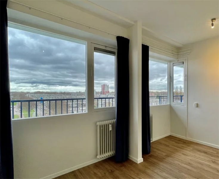 Bellentableau, postbussen en dubbele lift naar de verdiepingen. Entree/hal: Betegeld toilet; Betegelde badkamer voorzien van douche en wastafel; De keuken bevindt zich aan de voorzijde van de woning; De woonkamer bevindt zich aan de achterzijde van de woning met toegang tot het balkon met vrij uitzicht; De voorslaapkamer is nu bij de woonkamer getrokken. De slaapkamer is gelegen aan de achterzijde en geeft tevens toegang tot het balkon. Verstuur je bericht.: • De woning wordt gestoffeerd opgeleverd; • Voorzieningen keuken: oven magnetron, koelkast met apart vriesvak, vaatwasser • Voorzieningen badkamer: Douche en wastafel met spiegel, Voorwaarden: • Beschikbaar per direct • De maandelijkse huur bedraagt € 995,00.