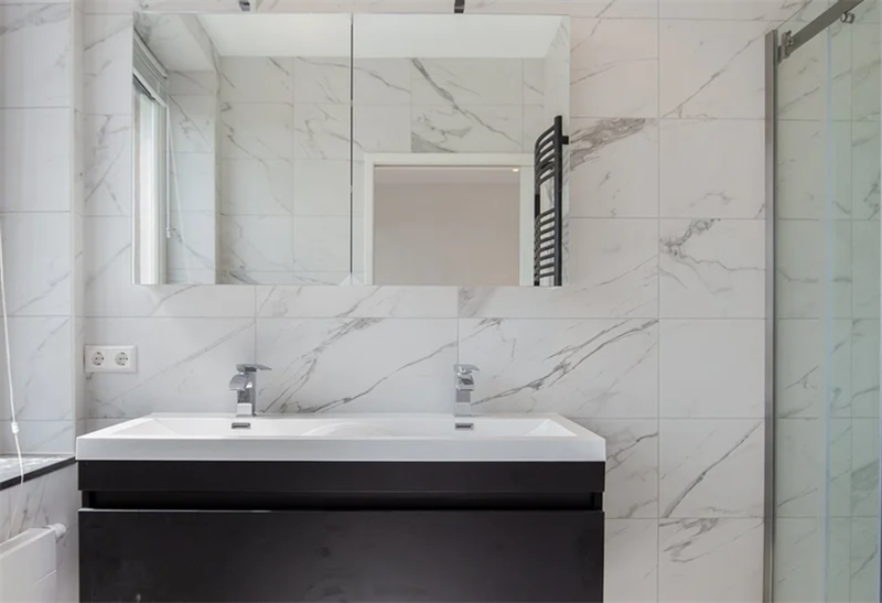 Via de karakteristieke ensuite deuren, uit een voormalig kasteel betreed u de slaapkamer. Deze bevind zich aan de achterzijde van het appartement. Vanuit de slaapkamer is er toegang tot het balkon en de badkamer. De badkamer is voorzien van dubbele wastafel, inloopdouche met regenkop en tot slot een separaat toilet.
