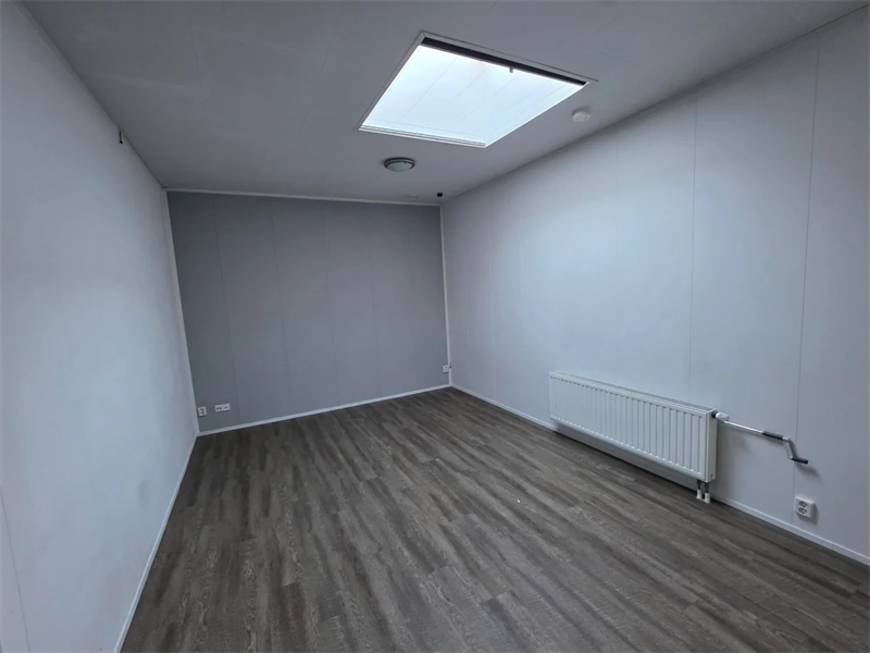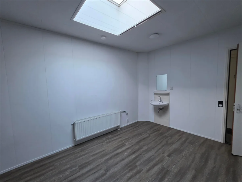 Op de begane grond bevindt zich deze studentenkamer van circa 18 m², voorzien van een eigen wastafel.