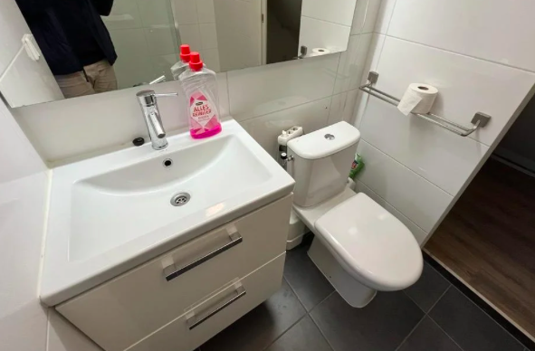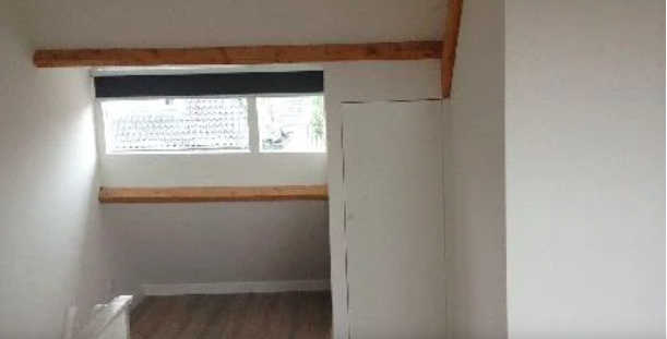 De ruimte is voorzien van een grote dakkapel waardoor er veel lichtinval ontstaat. De kamer beschikt over een eigen badkamer met inloopdouche, wastafel en toilet (op de foto's is een dubbele wastafel te zien, dit is nu een enkele wastafel met een toilet). De gezamenlijke ruimtes, zoals de keuken worden schoongehouden door een interieurverzorgster..