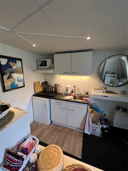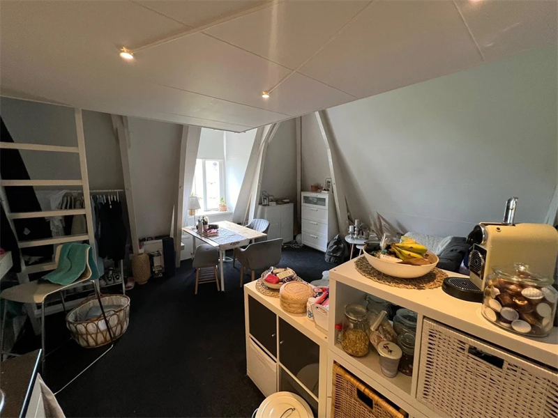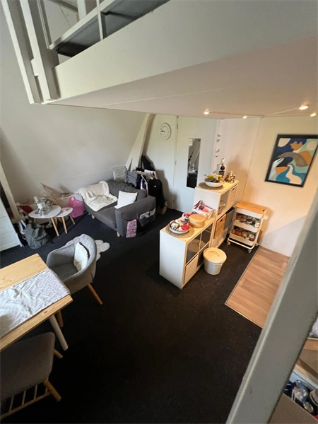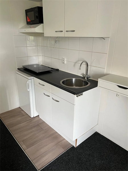 De woonruimte is ca. 26m2 groot en voorzien van een handige slaapvide. Tevens is er een eigen keuken met kookplaat, afzuigkap en koelkast met vriesvak. De douche en toilet deel je met vier andere huisgenoten.