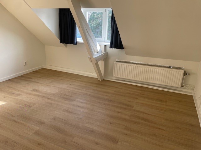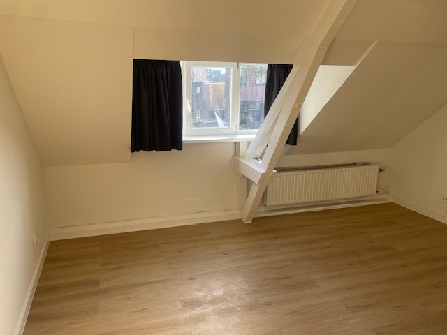 Buiten: Tevens grote tuin aanwezig ( 20 ) en berging. De tuin is bereikbaar met een eigen achterom. Fietsen kunnen dus veilig in de tuin geparkeerd worden. Eerste verdieping: De kamer is gelegen op de eerste verdieping en is voorzien van neiuwe vloerfawerking, kunststof kozijnen met dubbelgals, nieuwe schilderwerk en neiuwe gordijnen.