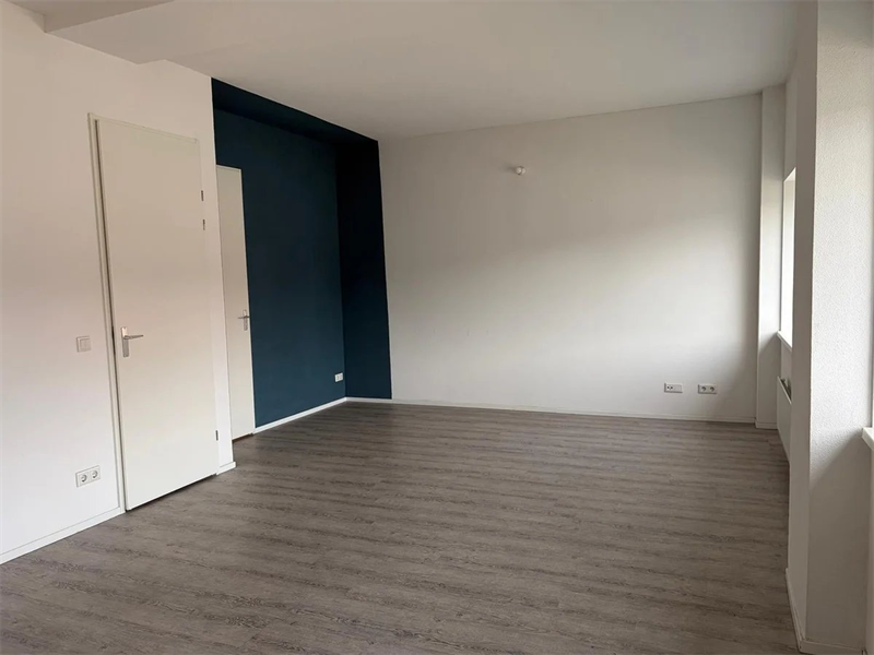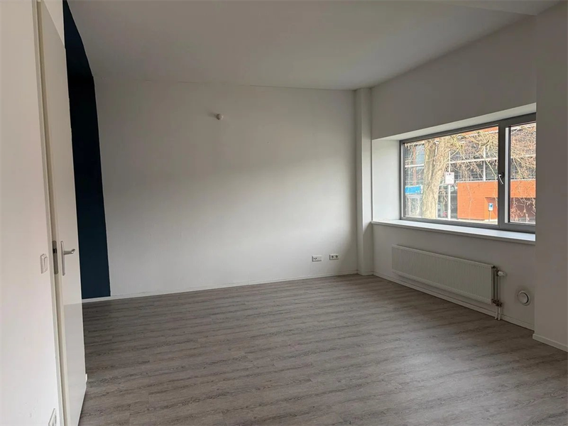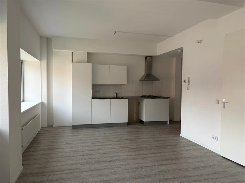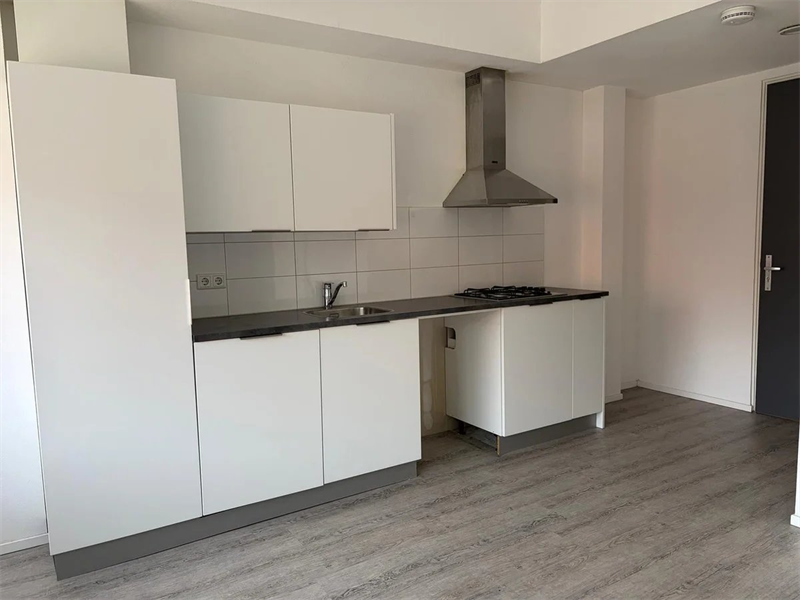 De studio is gelegen op de eerste etage. Binnenkomst in de woon-/slaapkamer met open keuken. De woon-/slaapkamer is voorzien van een open keuken in lichte kleurstelling. De keuken is voorzien van een kookplaat met afzuigkap en spoelbak verder is er ruimte voor het plaatsen van een koelkast.