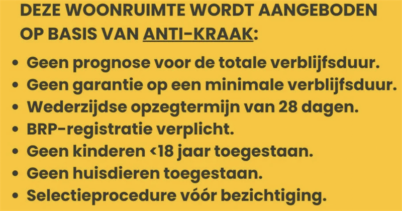 Goed om te weten: • BRP registratie verplicht. • Geen kinderen.