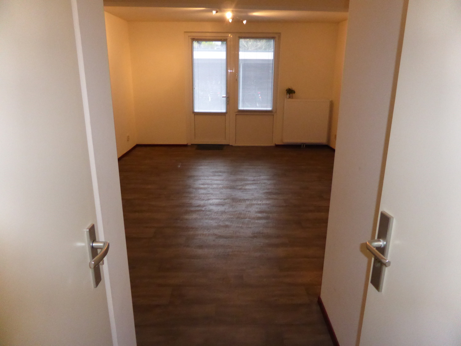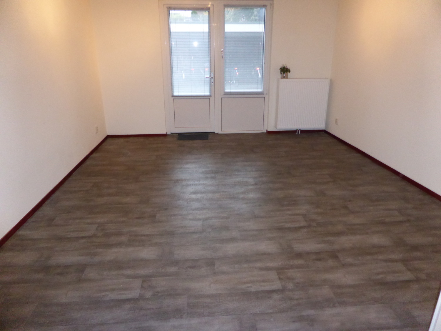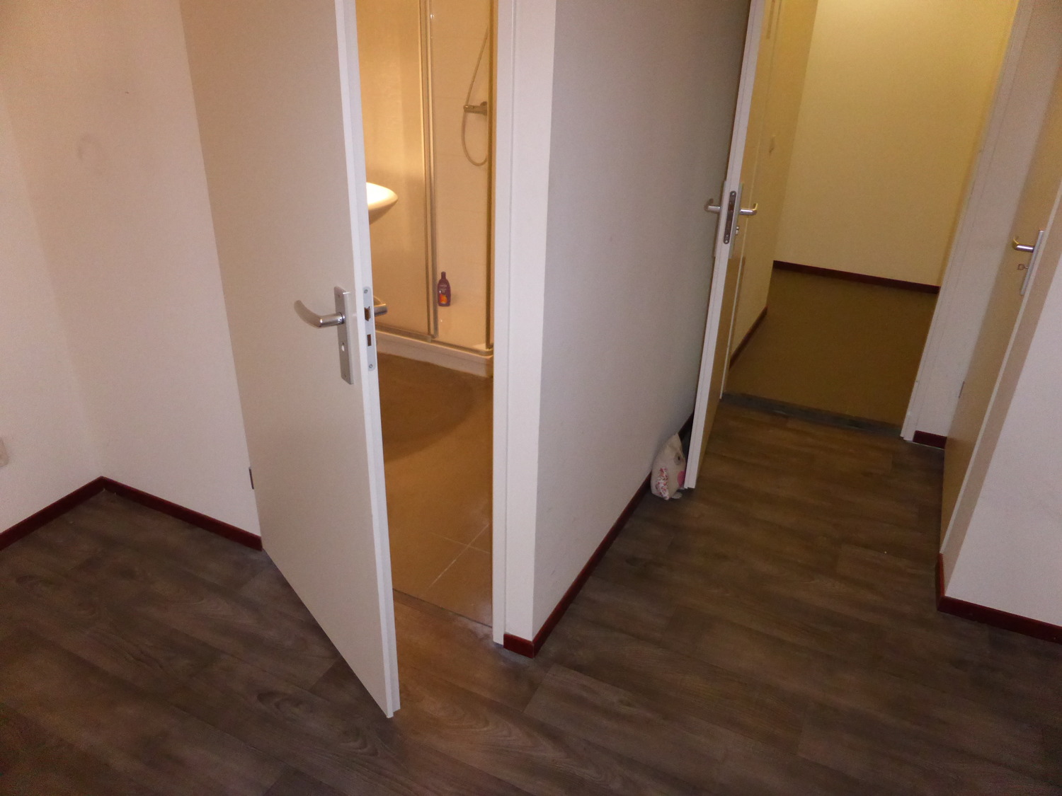De ruime woonkamer is uitgevoerd met een keurig afgewerkte vinyl vloer. Handige inpandige berging aanwezig. Eigen badkamer beschikt over een douche, toilet, wastafel en wasmachineaansluiting. De gemeenschappelijke keuken is gelegen op de begane grond.
